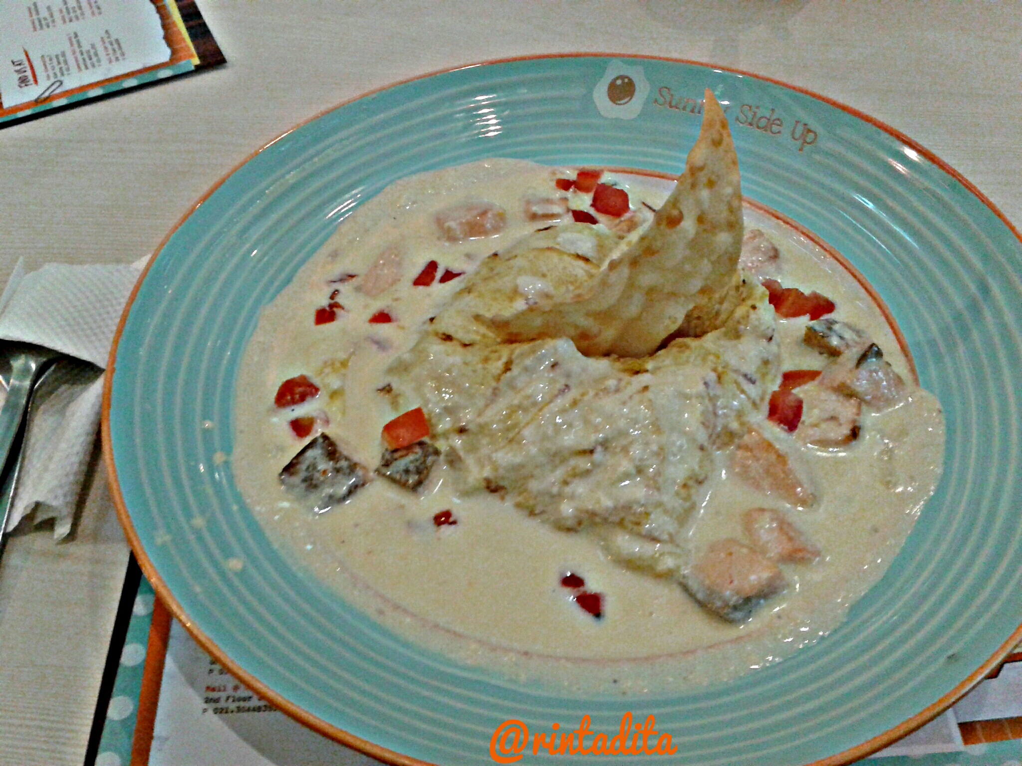 Sesuai dengan isi postingannya hari rabu lalu, si Lia udah berkoar-koar kalo mau dinas ke Jakarta dan ngajakin kopdar. Maka, pada hari sabtu kemarin jadilah kami kopdar di salah satu mall di Jakarta. Tadinya sih saya gak berencana ngajakin kopdar di mall, pengen nyobain makan siang sambil nongkrong-nongkrong di Goedkoop yang menurut beberapa review yang saya baca tempatnya lucu dan makanannya enak-enak. Sayangnya pas nyampe kesana ternyata tempatnya lagi full booked karena ada yang bikin acara disitu π₯ Berhubung waktu bikin postingan tentang resto Sunny Side Up kemaren si Lia sempet komen kalo dia ngiler banget pengen nyobain egg benedict, jadinya yaudah deh kita puter haluan ke Kota Kasablanka buat makan di Sunny Side Up, kebetulan saya juga pengen nyobain makanan yang lain disana, kebetulan juga saya ngajakin si Bebeb yang belum pernah ke Kota Kasablanka π Seperti yang kemarin, kalo kopdar ngajakin Bebeb gini awalnya dia pasti diem doank dan ngeliatin kita ngobrol trus jadi tukang poto *digaplok*. Tapi lama-lama jadi ikutan ngobrol juga soalnya Lia kan domisilinya di Pekanbaru dan Batam, sementara Bebeb dulu juga pernah tinggal di Batam beberapa bulan, jadi nyambung juga ngobrolnya. Dan ternyata si Lia ini masih muda banget, seumuran sama adek saya, tapi karena kita udah ikrib di blog dan kebiasaan panggil nama jadi ya anggep aja kita seumuran ya Lia *maunya*