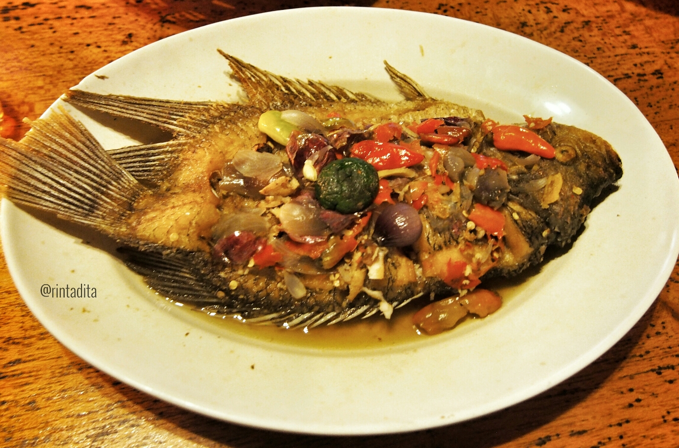 Aku baru sekali makan disini Dit, trmpatnya mayan enak ya sayang waktu itu siang bolong panas buanget and gak dapat gubuk yang deket kolam dah kebagian dibelakang2 gitu jadinya sumuk. Tapi makanannya enak2 🙂