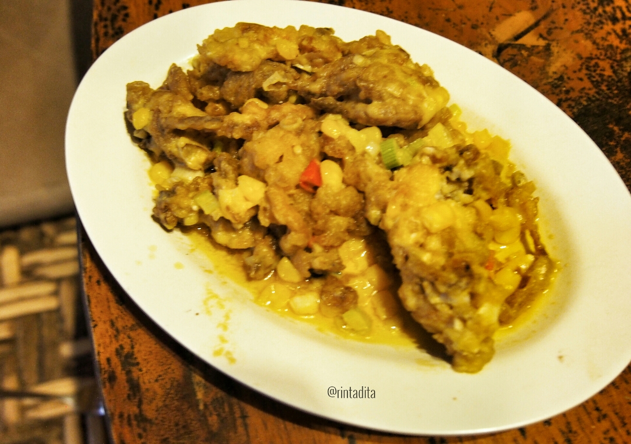 Selain kedua menu andalan di atas, ada juga menu lain yang kami cicipi seperti gurame bumbu rombeh, udang pepes pedas, nasi bakar udang, tumis tauge ikan asin, dan kepiting soka telur asin yang tadinya saya kira bakwan jagung. Kepiting soka ini menu favorit saya setelah gurame cobek, perpaduan kepiting soka yang digoreng crispy dengan saus telur asin yang pas, beneran enak deh. Tapi ada juga menu-menu lain yang gak sempet saya cicipi seperti burung puyuh goreng kremes (IDR 82,5K), ayam bakar kecap (IDR 79,5K) dan iga sapi bakar madu (IDR 85,5K) karena perut udah kekenyangan banget.