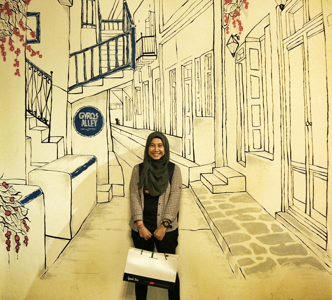 Seumur-umur saya belum pernah makan makanan Yunani, kalo masakan Yu Sum atau Yu Djum sih udah sering 😛 *ditiban kendi*. Makanya waktu Travel N Blog mau bikin acara ngobrol santai sambil buka puasa di sebuah restoran dengan citarasa Yunani bernama Gyros Alley, saya langsung antusias mendaftarkan diri. Restoran dengan nuansa biru putih ala bangunan-bangunan Santorini yang sering kita lihat di foto atau kartupos ini berlokasi di daerah Blok M. Ini artinya saya harus berangkat jauh lebih awal dari jadwal acara yang ditentukan, mengingat lalu lintas di daerah Blok M apalagi jam pulang kantor yang selalu macet.