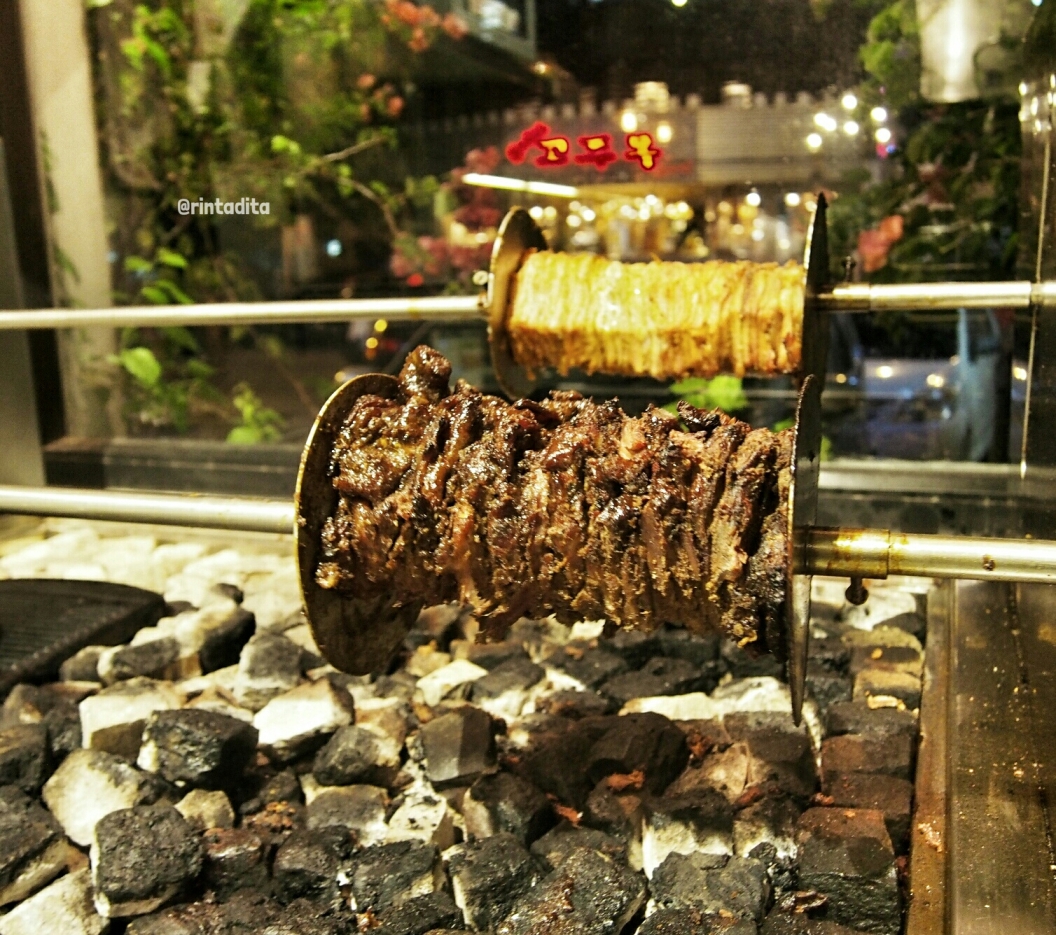 Karena dapurnya yang agak terbuka, selain kita bisa mengintip proses pembuatan makanannya, kita juga bisa membuktikan bahwa bahan-bahan yang digunakan di sini semuanya fresh sehingga menghasilkan makanan yang sehat. Daging kambing/lamb yang ada di Gyros Alley ini menggunakan daging kambing muda, karena konon yang muda-muda itu katanya lebih enak *sambil nonton video klip 1 Direction* 😛 Semua daging yang ada di sini baik ayam maupun kambing, dipanggang selama beberapa jam agar rasanya lebih tender dan juicy.
