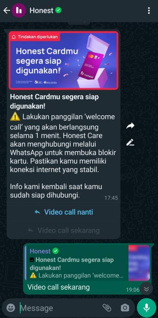 Hal unik lainnya, setelah pendaftaran kita disetujui, kartu kredit Honest dapat langsung digunakan untuk berbelanja tanpa harus menunggu kartu fisiknya sampai. Untuk aktivasinya kita tinggal melakukan video call dengan Customer Care Specialist. Video call-nya juga gak lama, disini Customer Care specialist menjelaskan cara penggunaan kartunya, penagihan, cara pembayaran dan lain-lain, kemudian setelah video call selesai kartu kita langsung aktif saat itu juga dan siap digunakan untuk bertransaksi. Dari video call ini, saya baru tahu kalo Honest merupakan kartu kredit dengan jaringan Mastercard sehingga bisa digunakan di manapun. Yaa kayak kartu kredit pada umumnya.