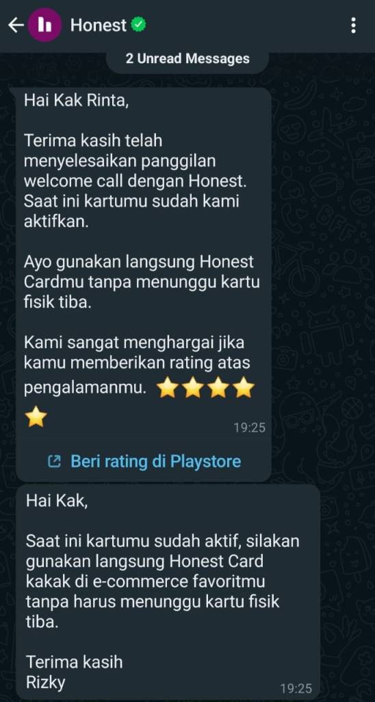 - Jika diterima, kamu sudah bisa langsung menggunakan kartu Honest meski kartu fisik belum tiba.