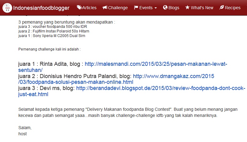 Pemenang lomba blog Food Panda & Indonesian Food Blogger : Pesan Makanan lewat Sentuhan
