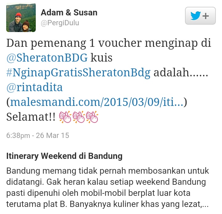 Pemenang lomba blog Pergidulu.com dan Sheraton Hotel : Itinerary Weekend di Bandung