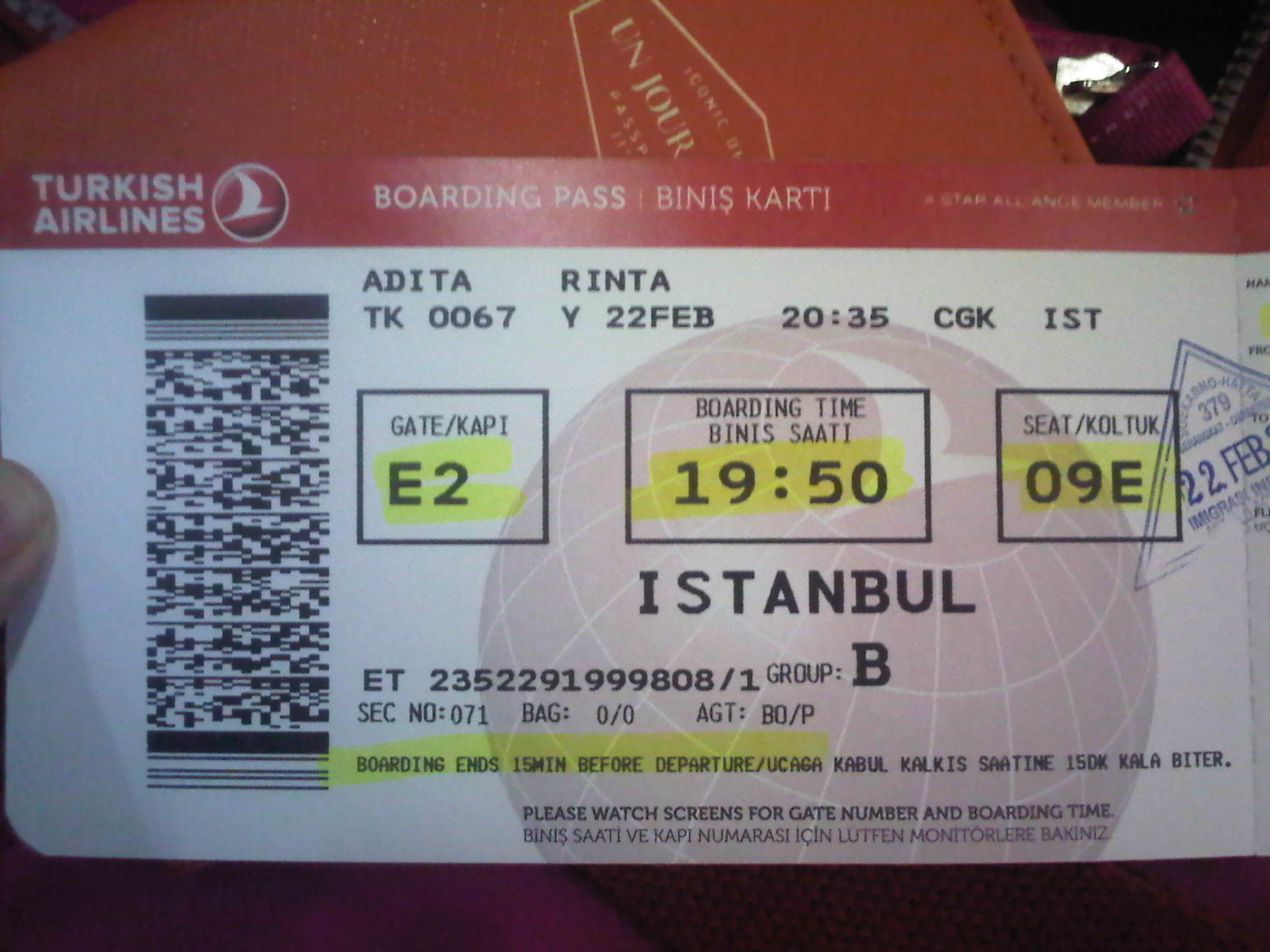 Sekitar bulan Agustus-September tahun lalu, Turkish Airlines sedang ada diskonan tiket untuk beberapa rute Eropa dan Amerika untuk travel period sampai dengan bulan Maret 2013. Maklum bulan-bulan segitu memang lagi low season. Karena memang berencana Eurotrip, inilah yang saya tunggu-tunggu. Beberapa hari sebelumnya juga ada diskonan tiket dari Etihad dan Qatar airways, tapi karena kelamaan mikir jadinya saya gak kebagian tiket promonya. Makanya kali ini saya gak boleh gagal lagi *pasang iket kepala*. Tapi webistenya Turkish Airline itu error melulu, udah masukin identitas segala macem banyak-banyak, kemudian error berkali-kali. Lelah saya, lelah *dijejelin kebab*. Akhirnya diputuskan beli tiketnya lewat travel agent aja supaya lebih aman. Memang harus nambah fee beberapa puluh ribu rupiah, tapi gak masalah karena abis itu tiket Jakarta-Istanbul PP seharga 7jutaan langsung berada di genggaman.